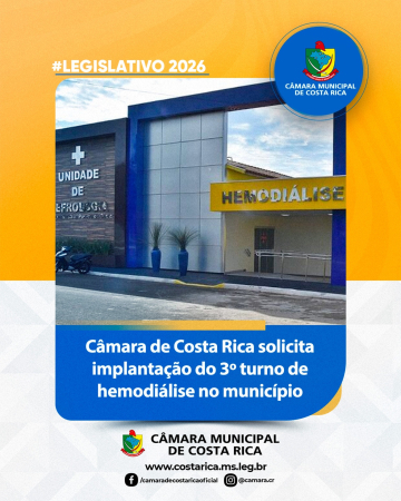 Em uma sessão histórica na noite de segunda-feira (13), a Câmara Municipal de Costa Rica aprovou por unanimidade a Indicação nº 78/2026, de autoria do vereador Juvenal da Farmácia, que atua como 1º secretário da Casa. A proposta, apresentada em nome de todos os vereadores, representa um marco na luta por melhores condições de atendimento aos pacientes renais da região.
